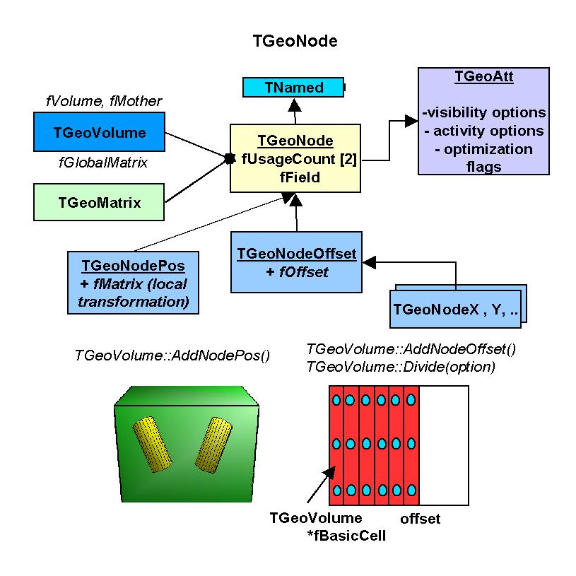 volumes and to the TGeoMatrix representing the relative positioning. Node are