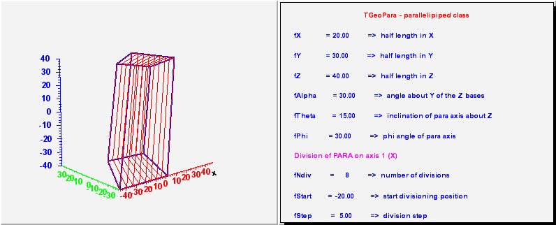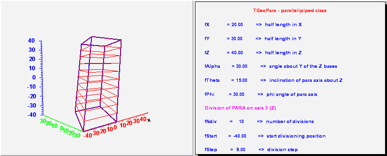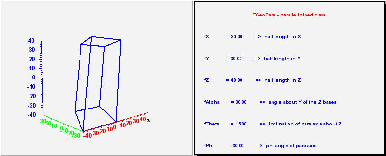 TGeoPara - parallelipeped class. It has 6 parameters :