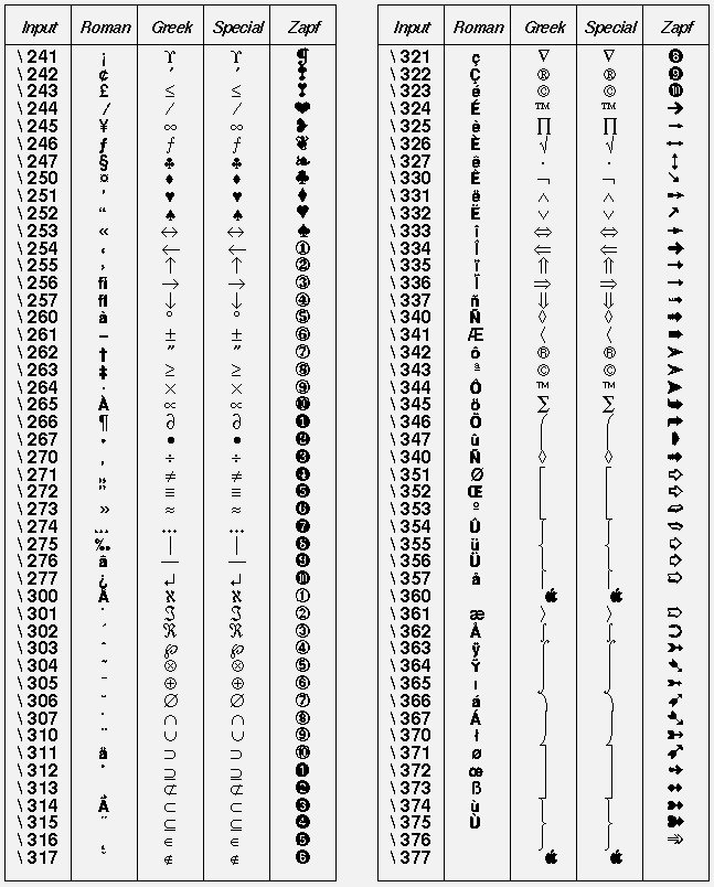 ` : go to Greek ' : go to special ~ : go to ZapfDingbats ? : go to subscript ^ : go to superscript ! : go to normal level of script & : backspace one character # : end of Greek or of ZapfDingbats